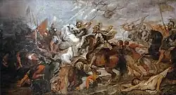 Rubens a représenté cette victoire française au travers d'une scène riche en symboles qui suggèrent la grandeur de cet évènement glorieux, et lui donnent plus d'éclat qu'il n'en eut en réalité.