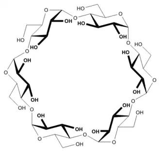 Une cyclodextrine (dite parfois cycloamylose) est une molécule-cage ou cage moléculaire d’origine naturelle qui permet d’encapsuler diverses molécules[1]. Les cyclodextrines se rencontrent aujourd'hui dans un grand nombre de produits agroalimentaires et pharmaceutiques et sont donc l’objet de nombreuses recherches scientifiques.