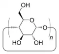 Une cyclodextrine est un oligomère (oligosaccharide) cyclique composé de n chaînons glucopyranose C6H10O5 liés en α-(1,4), d’où la formule brute (C6H10O5)n. Pour les cyclodextrines typiques les valeurs de n sont égales à 6, 7 ou 8. Mais d'autres cyclodextrines ont des valeurs de n plus élevées, de l'ordre de 10 à 30 ou même plus. Les plus grandes de ces molécules sont dites « cyclodextrines géantes »[2], et perdent les propriétés de molécules-cages. On utilise généralement le terme de cycloamyloses pour ces cyclodextrines qui tendent à se rapprocher de l'amylose. Cet oligomère en chaîne ouverte possède un grand nombre n de chaînons C6H10O5. On note l'analogie de structure entre : d'une part les trois cyclodextrines typiques et l'amylose, et d'autre part les trois cycloalcanes (CH2)n avec n = 6, 7 ou 8 et le polyéthylène (CH2)n avec n très grand.