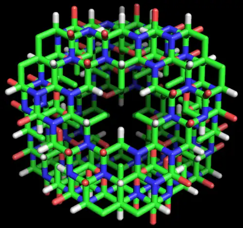 - ↑ D'après KH Meyer et Hohenemser W, « Possibility of the Formation of Cyclols from Simple Peptides », Nature, vol. 141, no 3582, , p. 1138–1139 (DOI 10.1038/1411138b0, Bibcode 1938Natur.141.1138M)