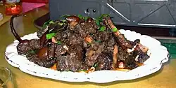 La minorité buyei consomme également de la viande de chien[18] dont la fondue de chien de Huajiang[réf. nécessaire], bourg du Xian autonome buyei et miao de Guanling.
