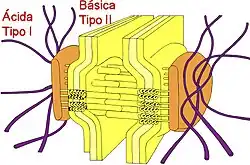 Généralement, les cytokératines s'assemblent en fonction de leur type et on trouve des couples type I - type II. Par exemple, on trouve le couple K5/K14 dans la couche basale de l'épiderme. Les cytokératines de type II sont plus longues que celles de type I.