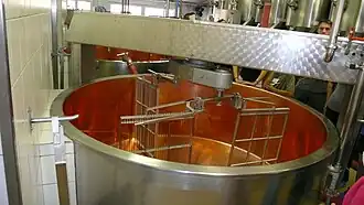 Le tranche-caillé utilisé pour le décaillage, est un instrument en forme de lyre, qui découpe le caillé en grains à l'aide de lames ou de fils bien tendus[4].