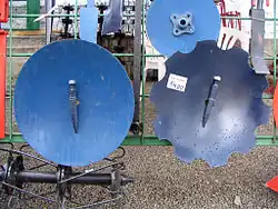 C'est un outil dont les pièces travaillantes sont des disques en forme de calotte. Ces disques assurent à la fois le travail de découpage horizontal et vertical de la bande de terre et celui de son retournement comme avec une charrue.