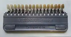 - ↑ Herekar M, Mangalvedhekar M et Fernandes A, « The Most Prevalent Tooth Shade in a Particular Population: A survey », Journal of the Indian Dental Association, vol. 4, no 12, .