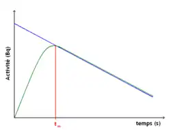 Les activités des deux isotopes sont alors équivalentes et décroissent selon la constante radioactive de l'isotope 1.