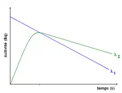 Soit l'isotope 1 qui se transforme en isotope 2 selon une constante radioactive . L'isotope 2 décroît selon la constante radioactive .