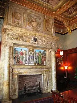La peinture de décor s'appliquait à feindre des matériaux comme le bois le marbre, le granit, le bronze et les assises de pierre. Le doreur rehaussait les moulures de feuilles d'or.