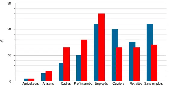 | Ouvriers | 168 | 12 | 7 | 16 | 8 | 13 | 63 169 | 19 974 | 18,1 | 23,7 | 3,9 | 15,7 |