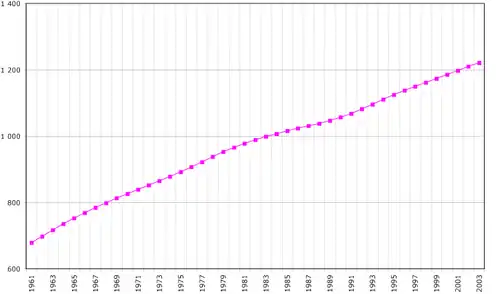 | Population (en milliers) | Naissances | Décès | Accroissement naturel | Taux de natalité (sur 1000) | Taux de mortalité (sur 1000) | Accroissement naturel (sur 1000) | |