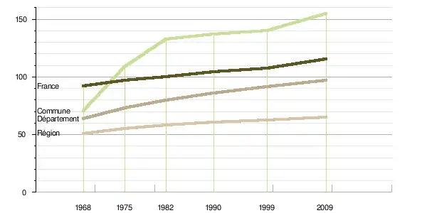 | 1968 | 1975 | 1982 | 1990 | 1999 | 2009 | Évolution annuelle moyenne sur la période 1968-2009 (%) | ||