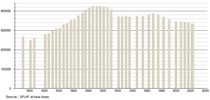 En 2022, le département comptait 334 715 habitants[Note 1], en évolution de −1,38 % par rapport à 2016 (France hors Mayotte : +2,11 %).