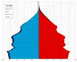 La population des Fidji est plutôt jeune (un peu plus de 28 % de la population a moins de 15 ans). L'espérance de vie moyenne s'élève à 72,43 ans. Les principaux groupes ethniques représentés dans ce pays du Pacifique sont les Fidjiens. La minorité la plus importante sont les Indiens des Fidji : parmi eux on trouve une communauté tamoule.