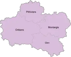 Le département du Loiret comporte trois arrondissements. La population se concentre principalement sur l'arrondissement d'Orléans, qui recense 66 % de la population totale du département en 2022, avec une densité de 155,7 hab./km2, contre 25 % pour l'arrondissement de Montargis et 9 % pour celui de Pithiviers.