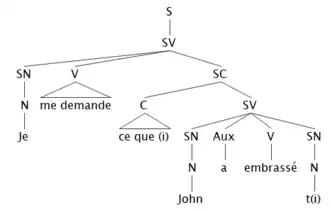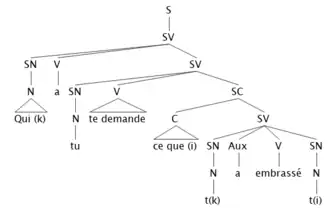 - [Quik a [tu te demande [ce quei [tk a embrassé ti]]] ?[3]