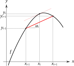 Cela dépend donc du rapport entre la valeur de et la courbure . Pour les zones où la fonction est « modérée » — c'est-à-dire que est de l'ordre de l'unité —, on peut retenir