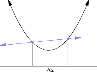 Graphiquement, cela revient à remplacer la tangente par la corde. Ceci peut se justifier par le théorème des accroissements finis : on sait qu'il existe un point de l'intervalle pour lequel la dérivée est la pente de la corde, et si l'intervalle est petit, alors ce point est proche du milieu . Cette méthode est automatisable sur les calculatrices programmables et les ordinateurs.