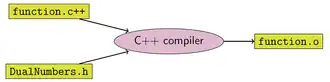 Lorsqu'une opération arithmétique binaire de base est appliquée à des arguments mixtes - la paire et le nombre réel —le nombre réel est d'abord porté à . La dérivée d'une fonction au point est maintenant trouvé en calculant en utilisant l'arithmétique ci-dessus, ce qui donne pour résultat .
