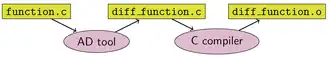 Le code source d'une fonction est remplacé par un code source généré automatiquement qui comprend des instructions de calcul des dérivées, entrelacés avec les instructions d'origine.
