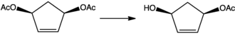 - ↑ Donald R. Deardorff, Colin Q. Windham, and Chris L. Craney "Enantioselective Hydrolysis of cis-3,5-Diacetoxycyclopentene: (1R,4S)-(+)-4-Hydroxy-2-cyclopentenyl Acetate" Organic Syntheses, Coll. Vol. 9, p.487 (1998); Vol. 73, p.25 (1996).