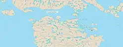 2. Plus précisément, à ce point, le passage entre les deux golfes ne se fait pas directement entre la terre de Baffin et le continent du fait de la présence de deux îles basses, l'île Elder (en) et l'île Ormonde (en), ainsi que d'une multitude d'îlots : du nord au sud, un premier chenal très étroit (300 m) sépare la Terre de Baffin de l'île Elder, un second à peine plus large est situé entre l'île Elder et l'île Ormonde et enfin le détroit principal (1900 m) s'ouvre entre l'île Ormonde et la péninsule de Melville.