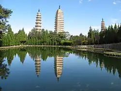 - Temple de l'Admiration pour la Divinité ou temple Chongsheng (重聖寺, ), où se trouvent les Trois Pagodes ;
