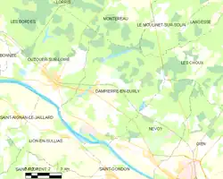 Carte de la commune de Dampierre-en-Burly et des communes limitrophes