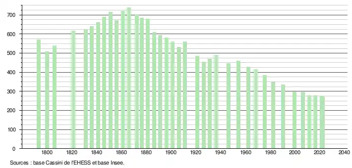 - ↑ Fiches Insee - Populations de référence de la commune pour les années 2006, 2007, 2008, 2009, 2010, 2011, 2012, 2013, 2014, 2015, 2016, 2017, 2018, 2019, 2020, 2021 et 2022.