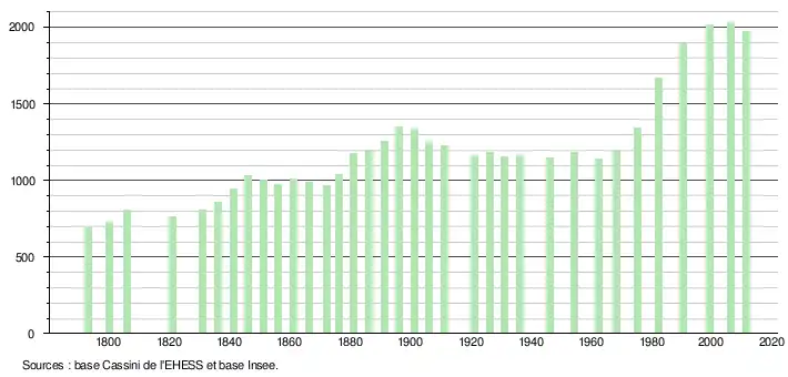 | L'évolution du nombre d'habitants est connue à travers les recensements de la population effectués dans la commune depuis 1793. À partir du , les populations légales des communes sont publiées annuellement dans le cadre d'un recensement qui repose désormais sur une collecte d'information annuelle, concernant successivement tous les territoires communaux au cours d'une période de cinq ans.