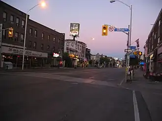 Elle traverse Greektown, le quartier grec de Toronto. Chaque année s'y déroule le festival Taste of the Danforth, qui célèbre durant trois jours la gastronomie et la culture grecque.