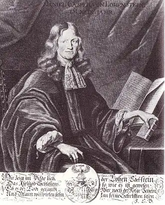 Daniel Caspar von Lohenstein (né le à Nimptsch - mort le à Breslau) est un juriste, diplomate et écrivain allemand. Figure marquante de la « seconde école silésienne », il est notamment l'auteur de pièces de théâtre où l'influence du classicisme français se fait sentir et d'un roman inachevé d'environ trois mille pages, Grossmüthiger Feldherr Arminius, dont le titre français est Le Magnanime Condottiere Arminius.