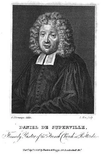 Daniel de Superville, né à Saumur dans une famille protestante d'origine béarnaise[1], fils du médecin niortais Jacques de Superville (?-1679) et de Marthe Pilet, fut très tôt désigné pour devenir pasteur. Il étudia la théologie à Saumur, puis, de 1677 à 1679, à Genève. En 1683, il fut nommé pasteur de l'église protestante de Loudun. Après la Révocation de l'Édit de Nantes, il se réfugia à Rotterdam. En 1691, les autorités y créèrent spécialement pour lui un pastorat, qu'il occupa jusqu'en 1724, où il demanda à en être déchargé. Son fils[2] Daniel de Superville (1700-1762) lui succéda en 1725.