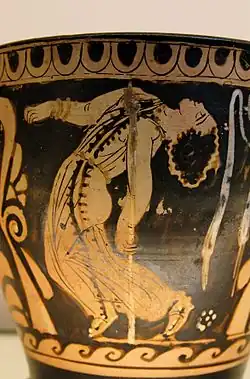 On sait peu de chose sur la danse extatique dans l'antiquité. Cependant, la mythologie grecque a plusieurs histoires des Ménades. Les ménades étaient des adoratrices enivrées du dieu grec du vin, Dionysos, connues pour leurs "révélations extatiques et leurs danses frénétiques"[6],[7]. Les mythiques adeptes féminines de Dionysos, comprenant les bacchants et les thyai ainsi que les ménades, auraient recherché le "délire sauvage" de la possession par le dieu pour pouvoir "sortir d'eux-mêmes", ce qu'on appelait "ekstasis". Les homologues masculins des Ménades étaient les Corybantes (grec Κορύβαντες), des danseurs extatiques armés et huppés qui adoraient la déesse phrygienne Cybèle avec des tambours et des danses. Ils étaient la progéniture de la muse Thalie et du dieu Apollon. Les Grecs les confondaient souvent avec d'autres confréries mâles extatiques, comme les Dactyles idéens ( Greek Δάκτυλοι Ἰδαῖοι) ou les Corybantes crétois (Κουρῆτες), des jeunes esprits (kouroi) dotés de pouvoirs magiques qui ont agi en tant que gardiens de l'enfant Zeus[8].