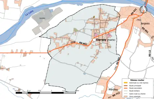 Carte de la commune de Darvoy et des communes limitrophes