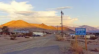 Darwin se trouve à 35 km au sud-est de Keeler, à une altitude de 1460 mètres.