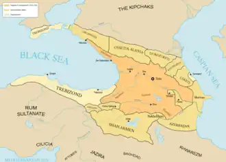 Leur expédition de Tblisi à Trébizonde dura huit jours, traversant probablement la Lazique par Theodosiopolis (Erzurum). Début avril, les forces géorgiennes arrivaient devant Trébizonde où le gouverneur Nicéphore Paléologue n’eut d’autre choix que de capituler devant des forces supérieures en nombre[21]. Peu après, Constantinople tombait aux mains des croisés et l’Empire byzantin était remplacé par l’Empire latin. Ainsi, quoiqu’il existe une similitude dans le temps entre la chute de Constantinople et la création de l’empire de Trébizonde, il n’existe pas de lien de cause à effet entre les deux, sinon que la création de l’empire de Trébizonde n’aurait pas été possible sans l’affaiblissement progressif de l’Empire byzantin qui conduisit à sa chute[22].