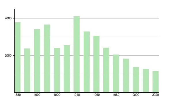 | 1950 | 3 288 | ▼ −19,8 % | |