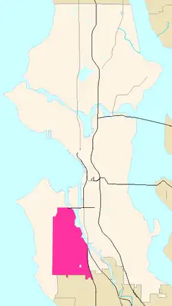 Il s'étend le long de Delridge Way, une artère qui suit le versant est de la vallée du Longfellow Creek (en), des environs de sa source jusqu'au West Seattle Bridge enjambant la Duwamish River.