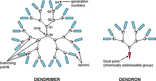 Un dendrimère[1],[2] est une molécule dont la forme reprend celle des branches d'un arbre. Le nom vient du grec δένδρον / déndron, « arbre ». En 1979, le premier dendrimère a été synthétisé par D.A. Tomalia[3] et d'autres chercheurs de la Dow Chemical Company, et des dendrimères ont depuis été étudiés partout dans le monde pour leur forme unique.