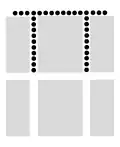 La perforation par peignes peut être décalée d'une ligne : la première rangée de timbres est ainsi accidentellement non dentelée sur trois côtés.