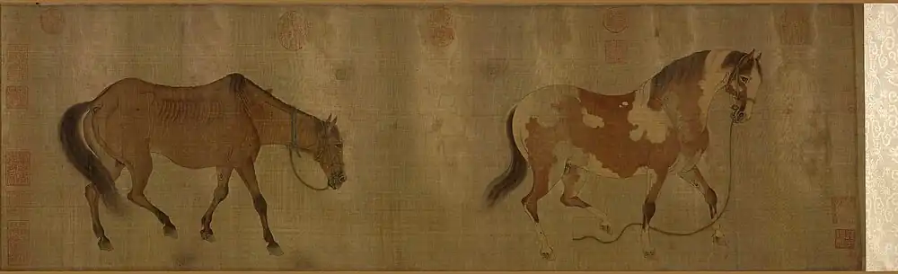 - 1 2 3 4 5 6 7 Yolaine Escande, « le cheval dans l'art chinois : un animal métaphorique », dans Giuseppe Castiglione dit Lang Shining (1688-1766), Lausanne, Éditions Favre, coll. « Grande écurie de Versailles », , p. 125-126.