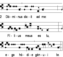 - La communion Cantabo Domino (iii D.P.P.) semble avoir subi dans l'édition vaticane un effondrement d'un ton de son introduction, le graduel dominicain en donne une version beaucoup plus plausible et conforme au type modal.