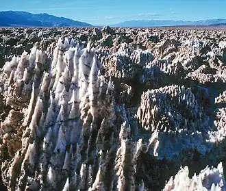 Les forages menés par la Pacific Coast Borax Company, avant que Death Valley ne devienne un parc national en 1934, ont permis de découvrir que le sel et les lits de gravier pouvaient atteindre une profondeur de plus de 300 mètres. Plus tard, des études suggèrent qu'en certains endroits (en face d'Artiste Drive) la profondeur pouvait atteindre 1 200 mètres[2] voire 2 700 mètres[3] à Mormon Point et Bennett's Well[4].