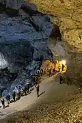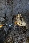 Vraisemblablement formée par un glissement de terrain, la grotte abrite la plus haute chute d'eau souterraine des Balkans puisque la rivière se jette d'une hauteur de 42 mètres dans la plus grande salle souterraine des Balkans : 110 mètres de long, 35 mètres de haut et 40 mètres de large. 400 mètres plus bas, la galerie siphonne et le reste de la grotte reste inconnu[1].
