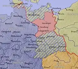 Selon l'historiographie traditionaliste, la vaste marche de l'Est saxonne (marca Geronis) a été divisée en plusieurs morceaux par l’empereur Otton Ier après la mort du margrave Gero Ier le ; dans les actes, Dietrich apparaît comme margrave de la marche du Nord s'étendant jusqu'aux frontières de la Pologne et de la Poméranie à l'Est. À partir de 966, il est également désigné comte en Derlingau.