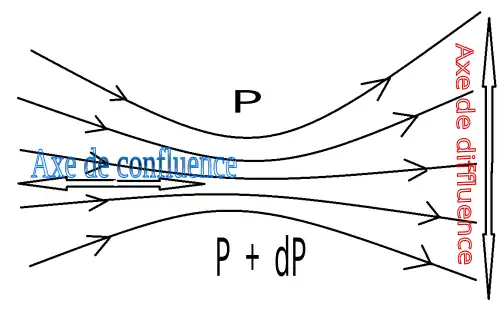 Il est important de ne pas confondre une zone de divergence avec une zone de diffluence. En effet, dans une zone divergente, on a plus d'air sortant qu'entrant et donc une perte de masse, ce qui va être compensé par un mouvement vertical de l'air[3].