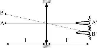 - Il présente un maximum absolu pour , c'est-à-dire le lieu de convergence des rayons qui se propagent en ligne droite à travers l'ouverture: c'est l'image géométrique de la source. On s'attendait bien à obtenir des interférences constructives en ce lieu puisque les rayons lumineux qui forment l'image géométrique ont une différence de marche nulle;