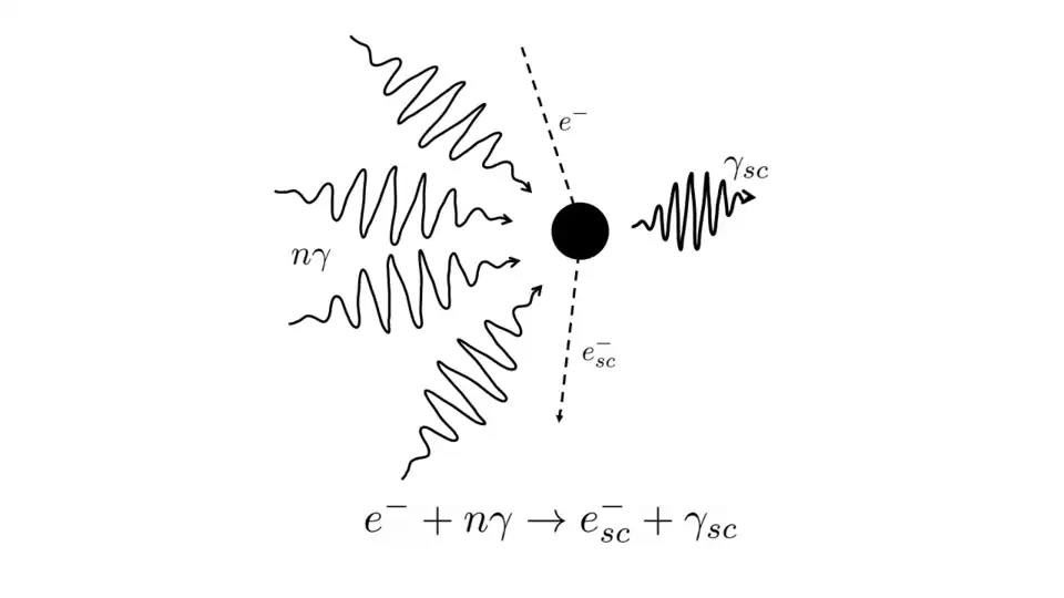 La diffusion Compton inverse non linéaire est un processus de diffusion appartenant à la catégorie des phénomènes d'interaction entre la lumière et la matière. L'absorption de plusieurs photons d'un champ électromagnétique intense par une particule chargée provoque l'émission conséquente d'un rayon X ou d'un rayon gamma d'une énergie comparable ou supérieure à l'énergie au repos de la particule chargée[4].