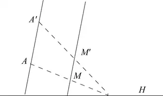 On montre que la droite garde une direction fixe , ce qui montre que s'obtient par projection de dans (projection de base et de direction ). Connaissant , on en déduit par rotation[10].