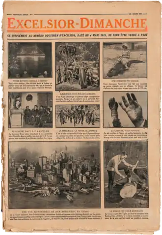 - ↑ Excelsior-Dimanche, vol. 1 nº 1, Paris, , 16 p. (lire en ligne sur Gallica).